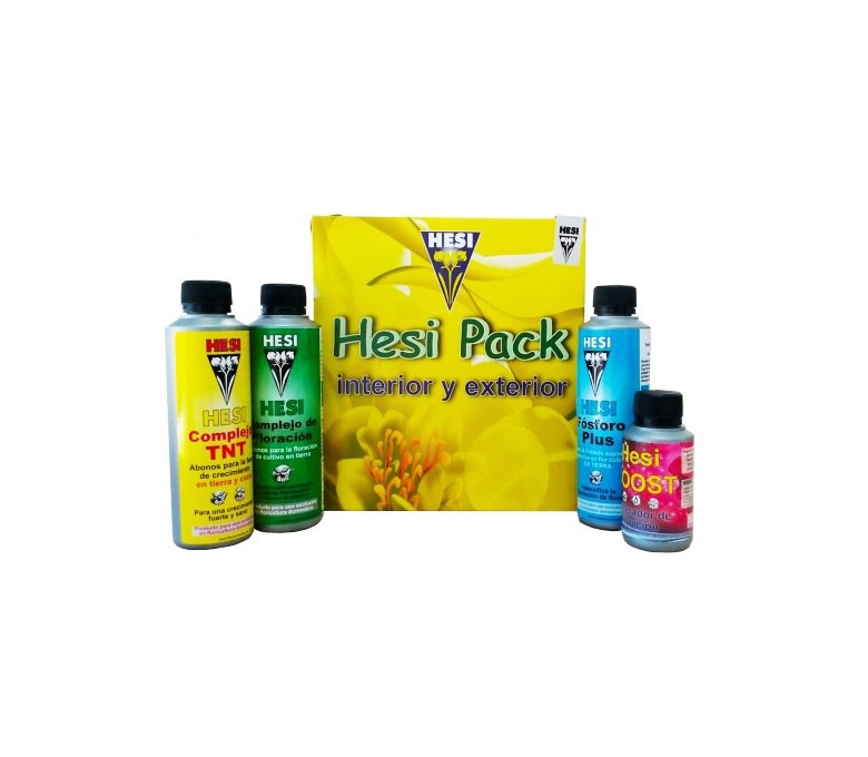 Pack Interior y exterior de Hesi es un pack de fertilizantes con todo lo necesario para desarrollar nuestras cepas, incluyendo las bases de crecimiento y floración, el estimulador y floración y un aporte de PK para la fase de engorde.
